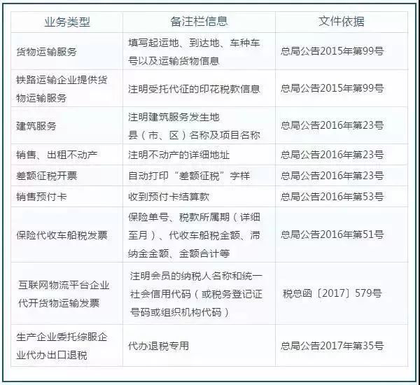 一、增值税发票备注栏总表
